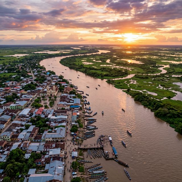 A thriving river port in the Mojana region on the banks of the Cauca River, a key commercial hub for the amphibious communities of southern Sucre.