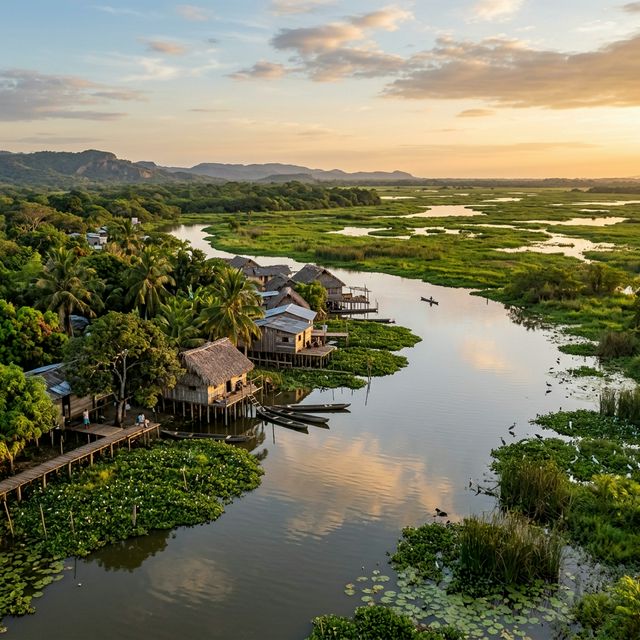 The "Pearl of the San Jorge," known for its unique amphibious landscapes, rich wetlands, and its role as a key agricultural and livestock trading center.