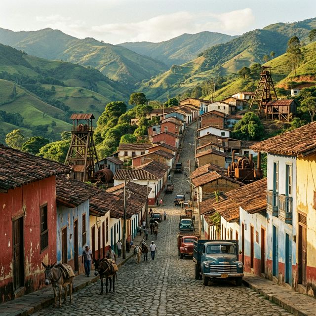 A historic mining town with colonial architecture, nestled in the mountains and rich in cultural and economic history.