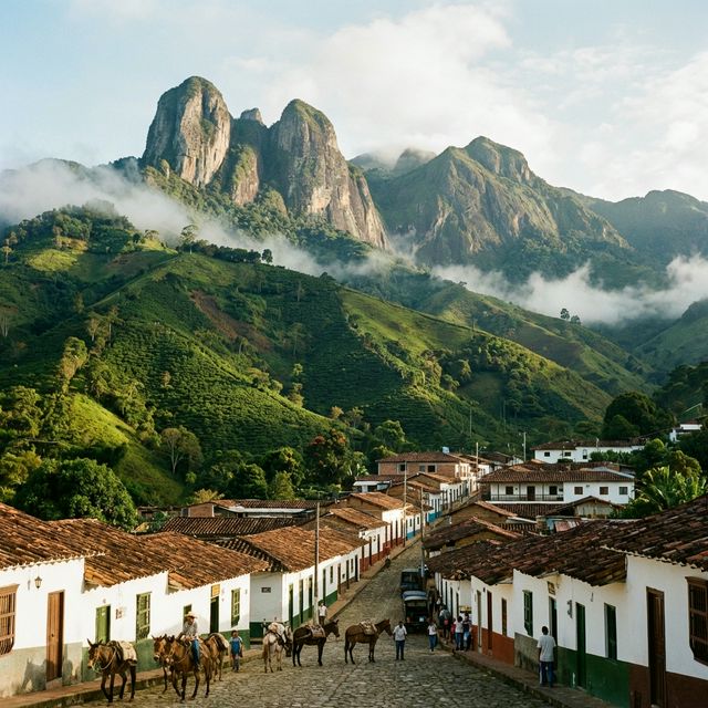 Perched at the foot of the magnificent Farallones del Citará, this town offers dramatic mountain scenery and coffee vistas.