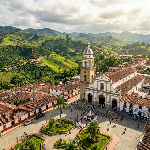 A scenic balcony town overlooking the Cauca River, known for its stunning sunsets and coffee culture.