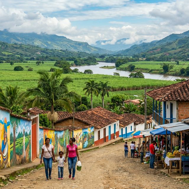 A small Afro-Colombian municipality in northern Cauca with sugarcane fields, the Cauca River valley, and vibrant community culture.