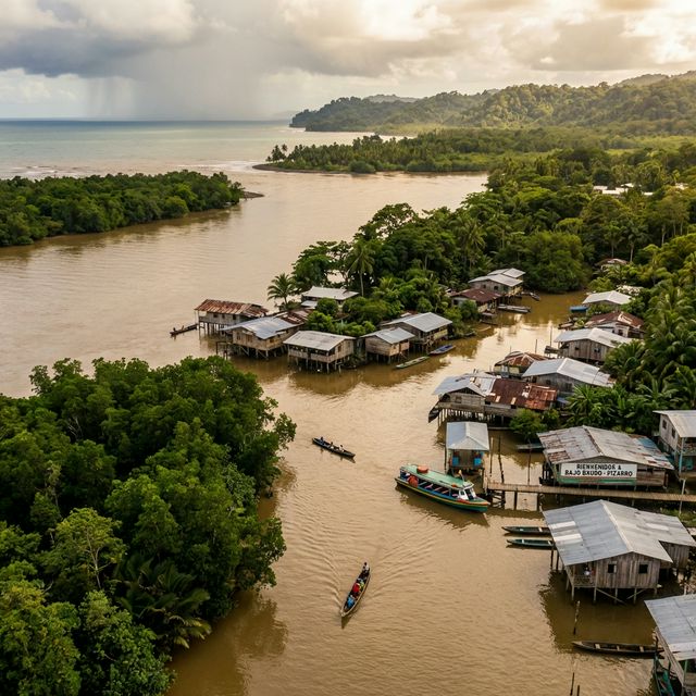 A coastal town where the Baudó River meets the Pacific, surrounded by mangroves and traditional fishing communities.