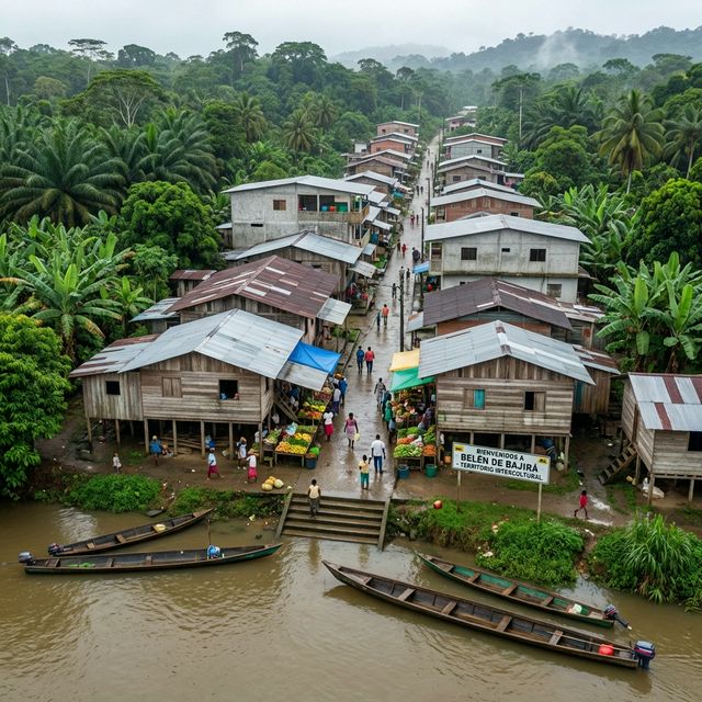 A multicultural town in the Lower Atrato, serving as a hub for Afro-Colombian, indigenous, and mestizo farming communities.