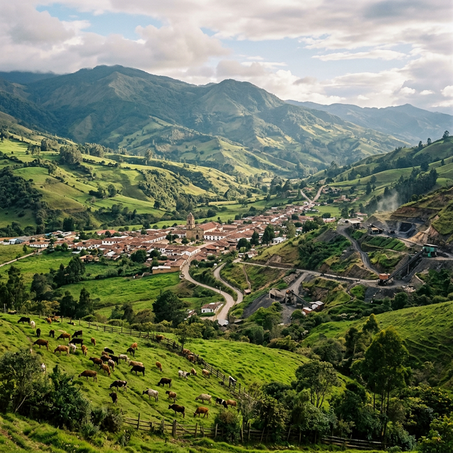 A mining and dairy town set in a fertile Andean valley, known for its rich coal deposits and historic main square.
