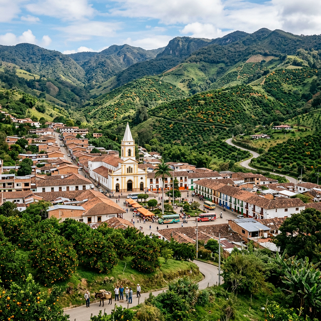 The birthplace of the Colombian orange industry, this historic town is nestled in a fertile valley famous for its agricultural wealth.