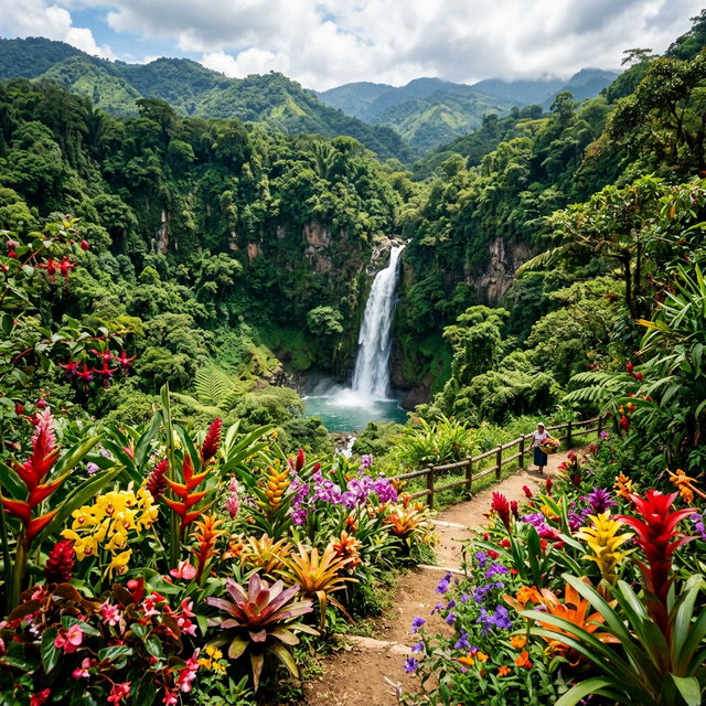 Known as the "Jardín del Huila", it features exuberant nature, colorful exotic flowers, and pristine waterfalls.