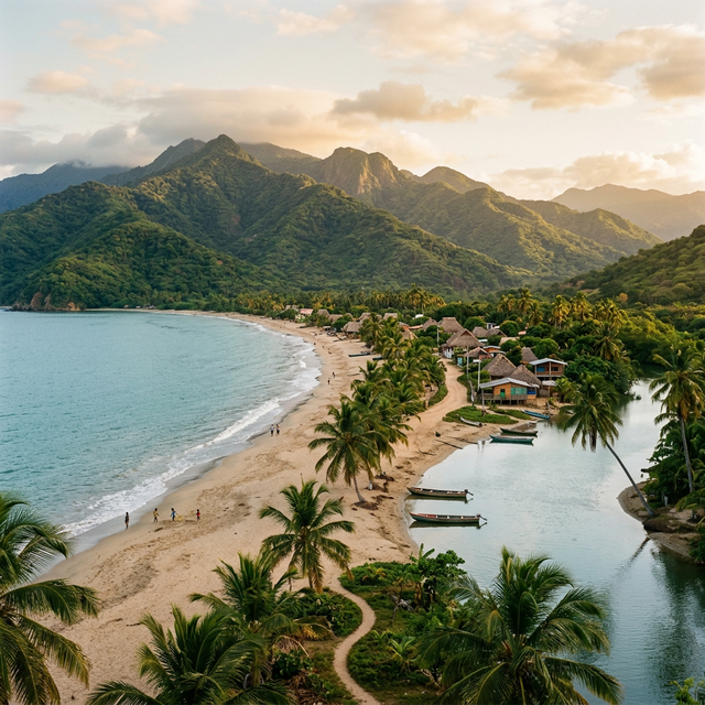 A tranquil coastal gem at the foot of the Sierra Nevada, where tropical rivers meet palm-lined beaches in an authentic Caribbean setting.