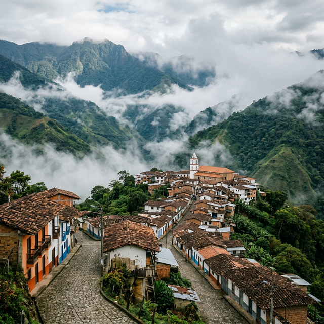A peaceful Andean sanctuary high in the mountains, characterized by its steep cobblestone streets, traditional architecture, and cool highland air.