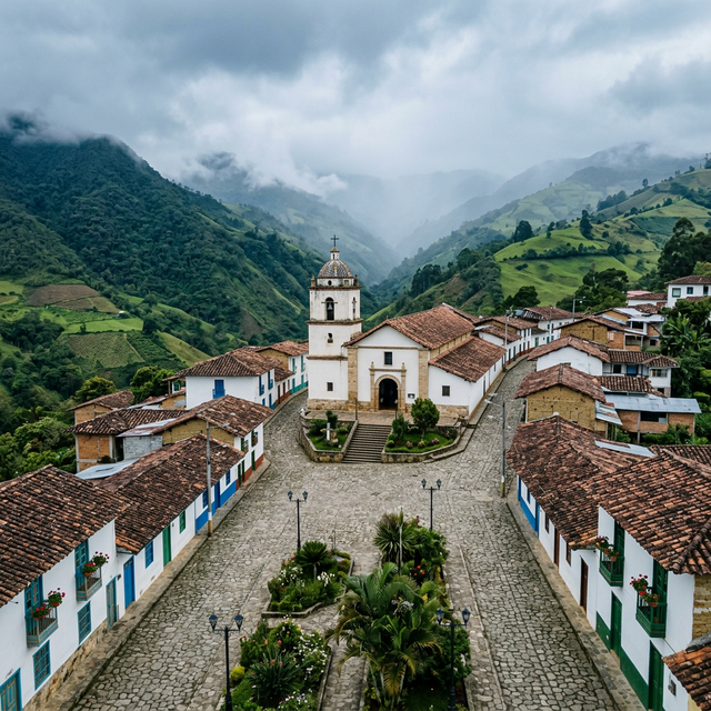 A picturesque mountain town set on steep green slopes, offering breathtaking views of the Magdalena River valley and rich coffee heritage.