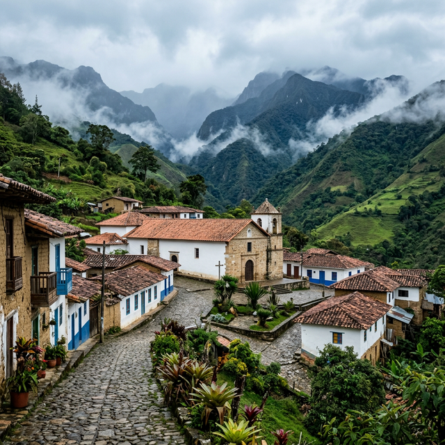 A misty and tranquil colonial village in the highlands, one of Nariño's hidden gems, offering cobblestone streets, a beautiful church, and sweeping views of the surrounding green mountains.