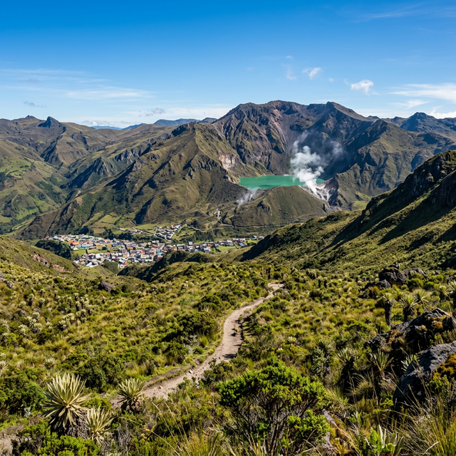 A gateway to the spectacular Azufral volcanic crater lake (Laguna Verde), one of the most dramatic and beautiful high-altitude lakes in Colombia, with emerald waters surrounded by sulfur-emitting fumaroles.