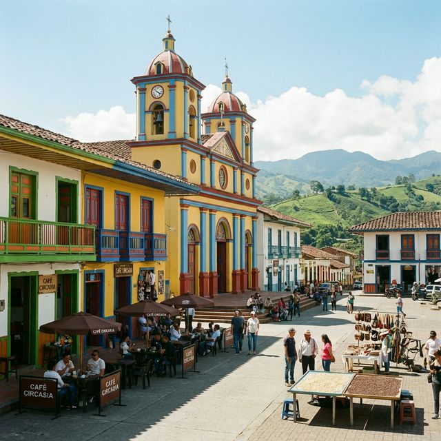 A verdant "Pueblo Patrimonio" at the heart of the Coffee Region, surrounded by wax palms and colonial balconies cascading with tropical flowers.