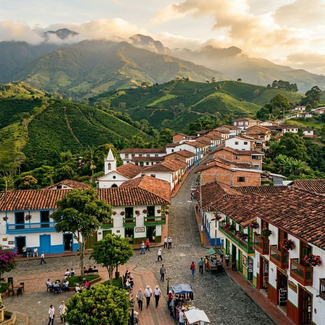 A picturesque coffee-growing town in the central cordillera, famous for its "National Flowers and Coffee Festival" and its traditional bahareque architecture.