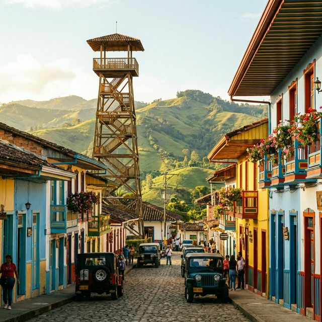 A stunning heritage village and photographer's dream, with colorful balconies, panoramic views of the Quindío River valley, and artisan basketweaving traditions.