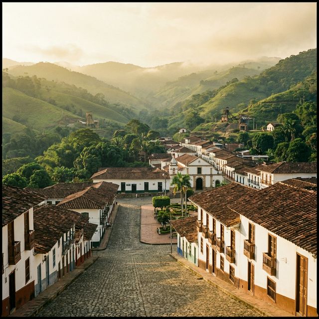A historic mining town with colonial architecture, nestled in the mountains and rich in cultural and economic history.
