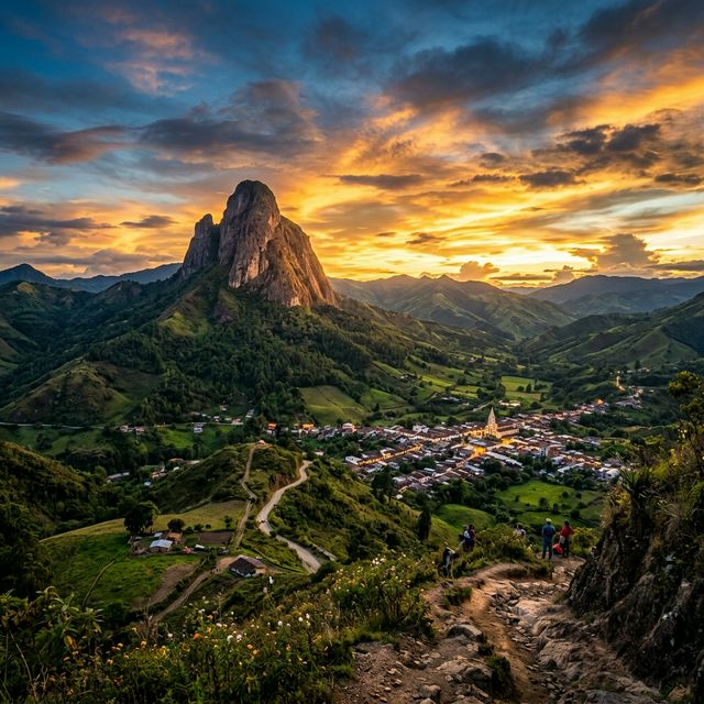 The "Villa de los Cerros," an iconic mountain town dominated by the massive Cerro Batero monolith, known for its pre-Columbian gold heritage and dramatic scenery.