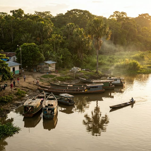 A biodiversity-rich river port in the Magdalena Medio, where the wetlands meet the tropical forest along the railway.