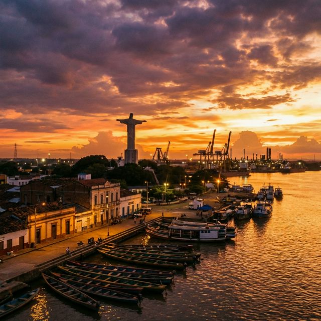 A vibrant tropical river port on the Magdalena River, known for its sunsets and industrial heritage.