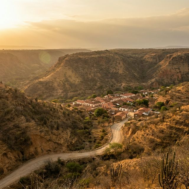 A hidden gem deep within the Chicamocha Canyon, characterized by its arid beauty and colonial tranquility.