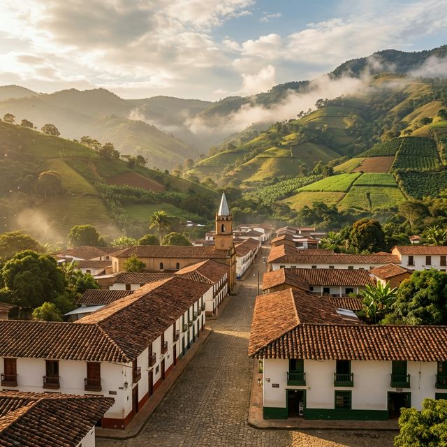 A warm-climate town in the García Rovira province, nestled in a fertile valley surrounded by lush tropical hills.